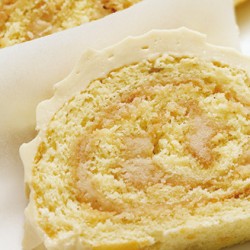 7. Renverser le gâteau sur un papier parchemin. Retirer le papier du dessus. Rouler le gâteau encore tiède avec le papier à partir du côté le plus court. Laisser refroidir complètement.
